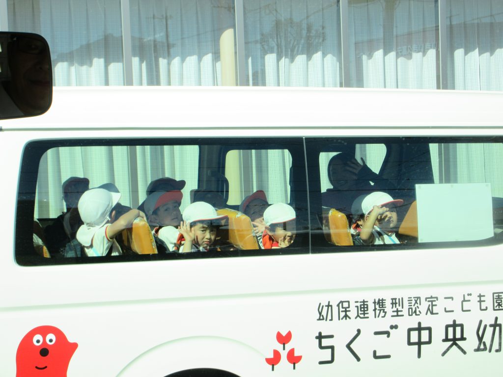 出発前にはしっかりお約束して、園バスに乗って出発!